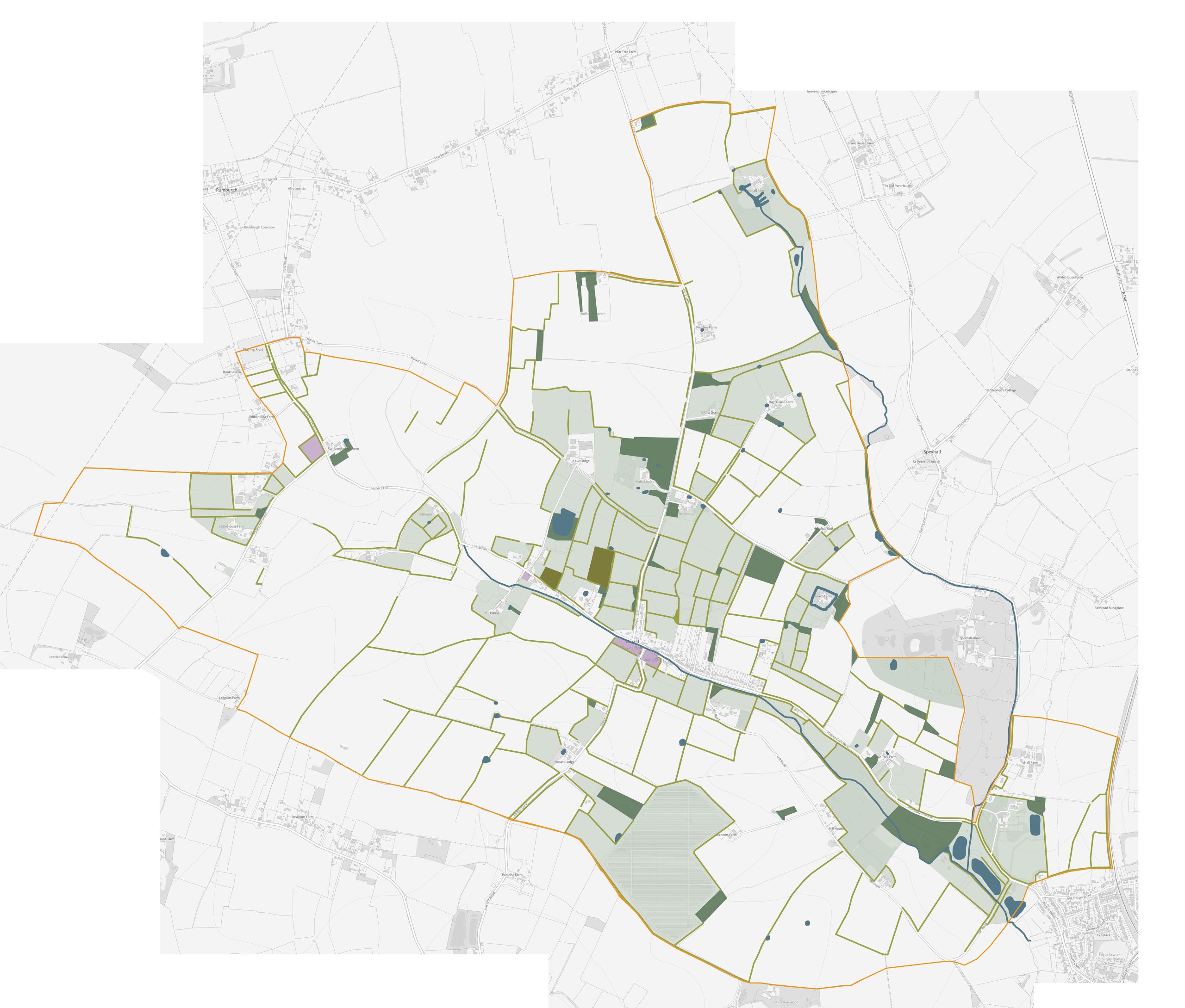 The expanse of white represents large, open and intensively farmed land which we hope to work with local landowners to create habitat corridors to link with existing habitats and adjacent parishes